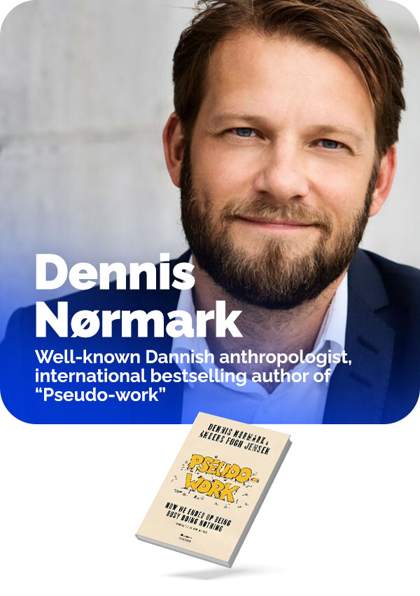 Well-known Dannish anthropologist, international bestselling author of “Pseudo-work: how did we ended up being busy doing nothing”